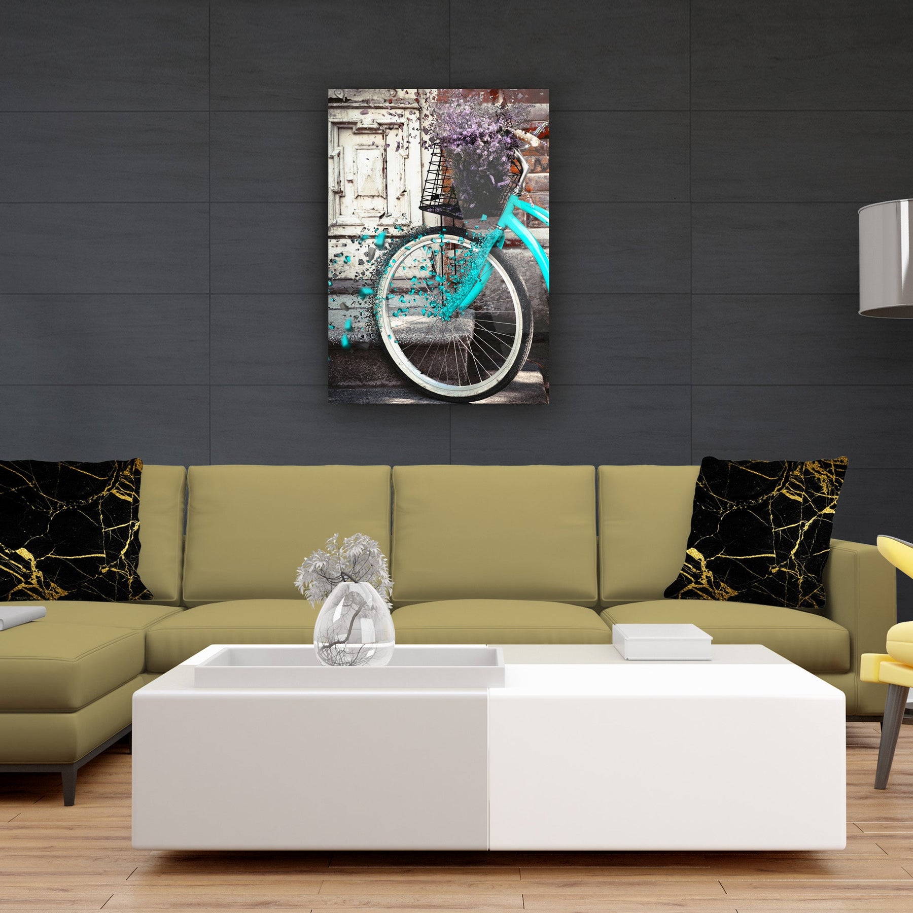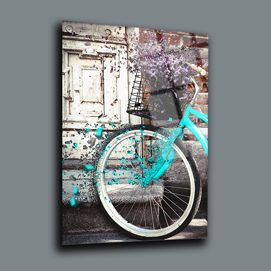 Çiçekli Bisiklet Cam Tablo
