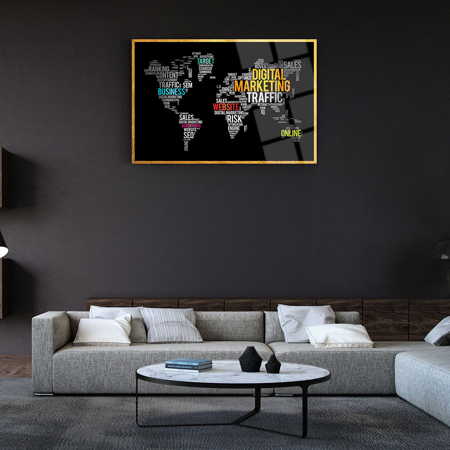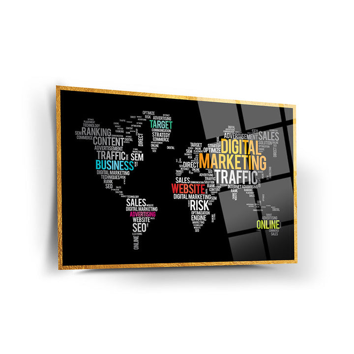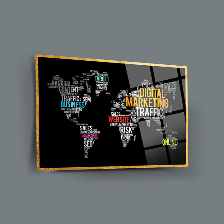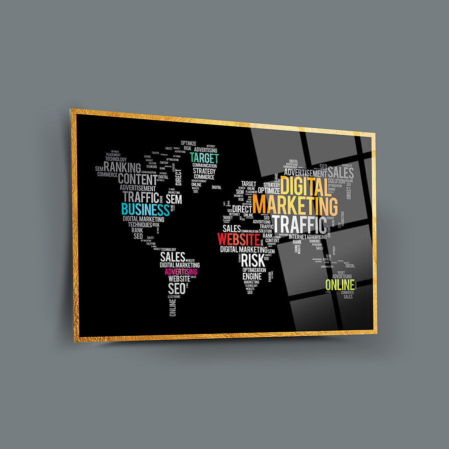 Dijital Pazarlama Dünya Haritası Cam Tablo
