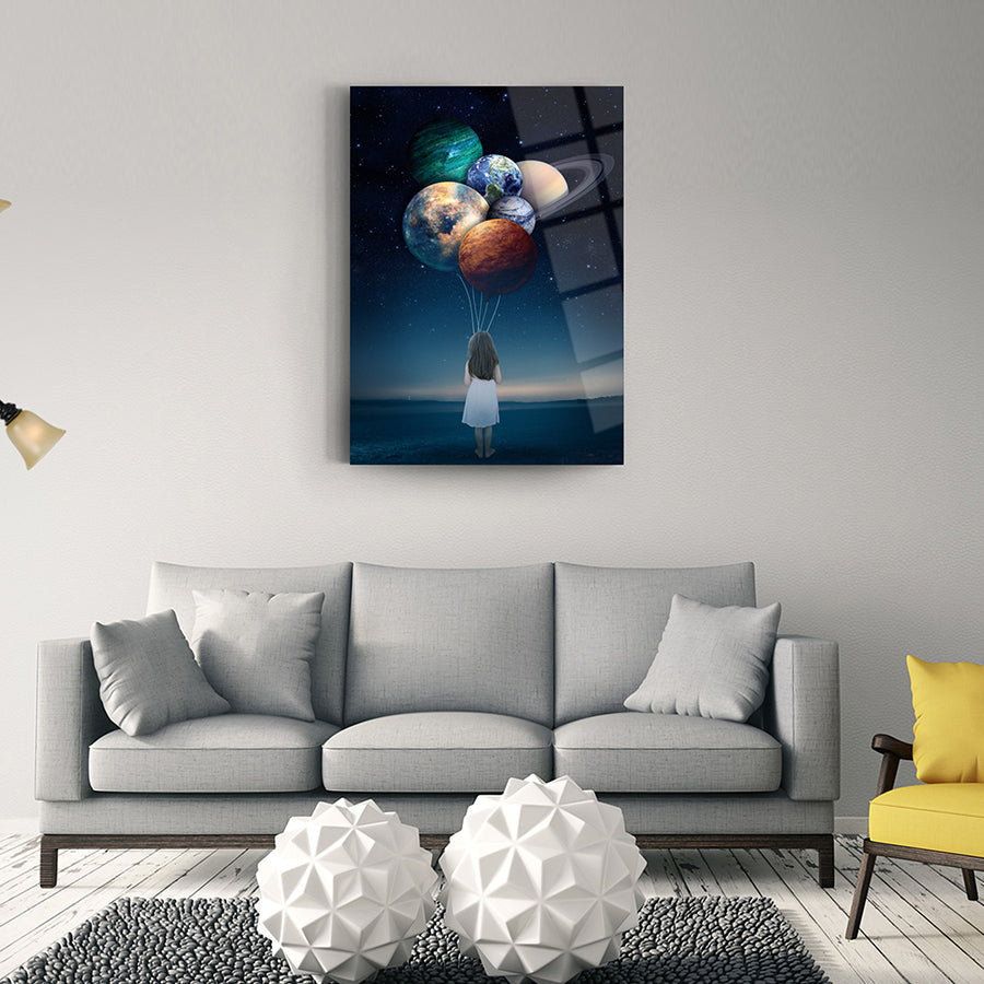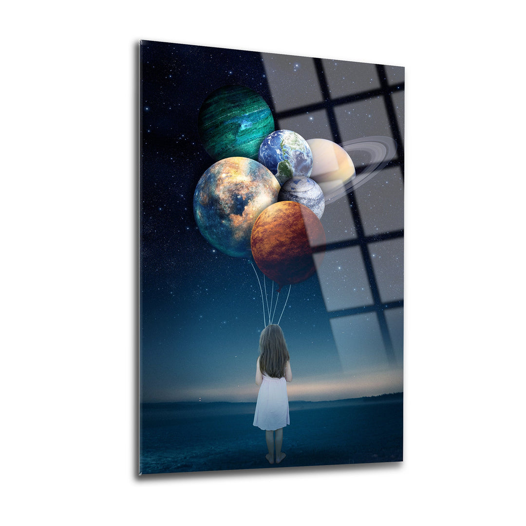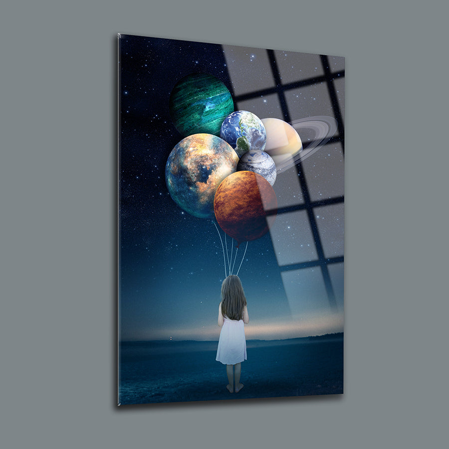 Gezegen Balonları Cam Tablo