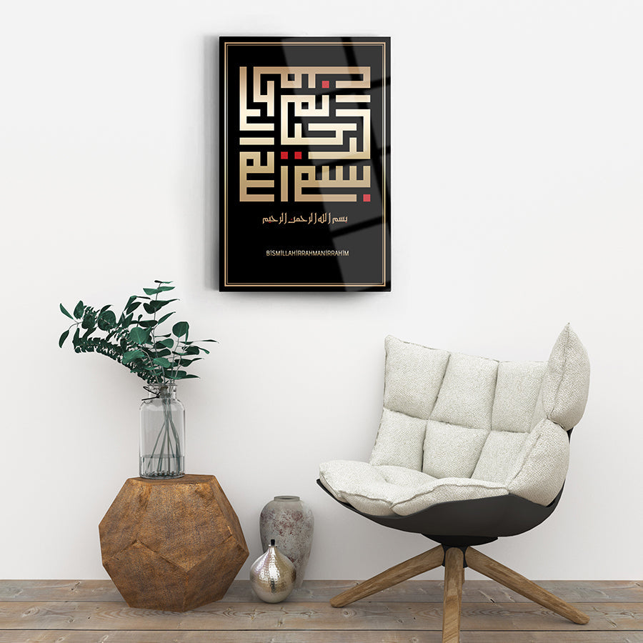 Kufi Bismillahirrahmanirrahim 1 Cam Tablo