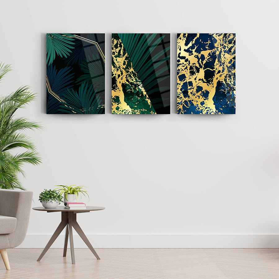 Mermer ve Yaprak 3'lü Set Cam Tablo