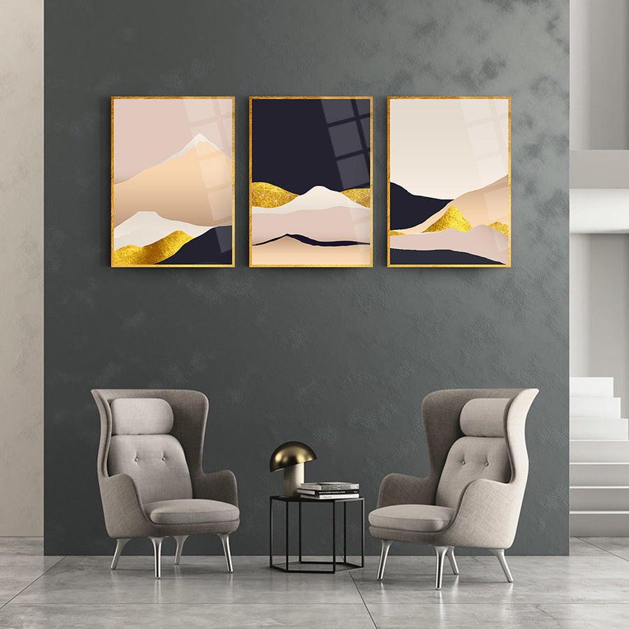 Pembemsi Dağlar 3'lü Set Cam Tablo
