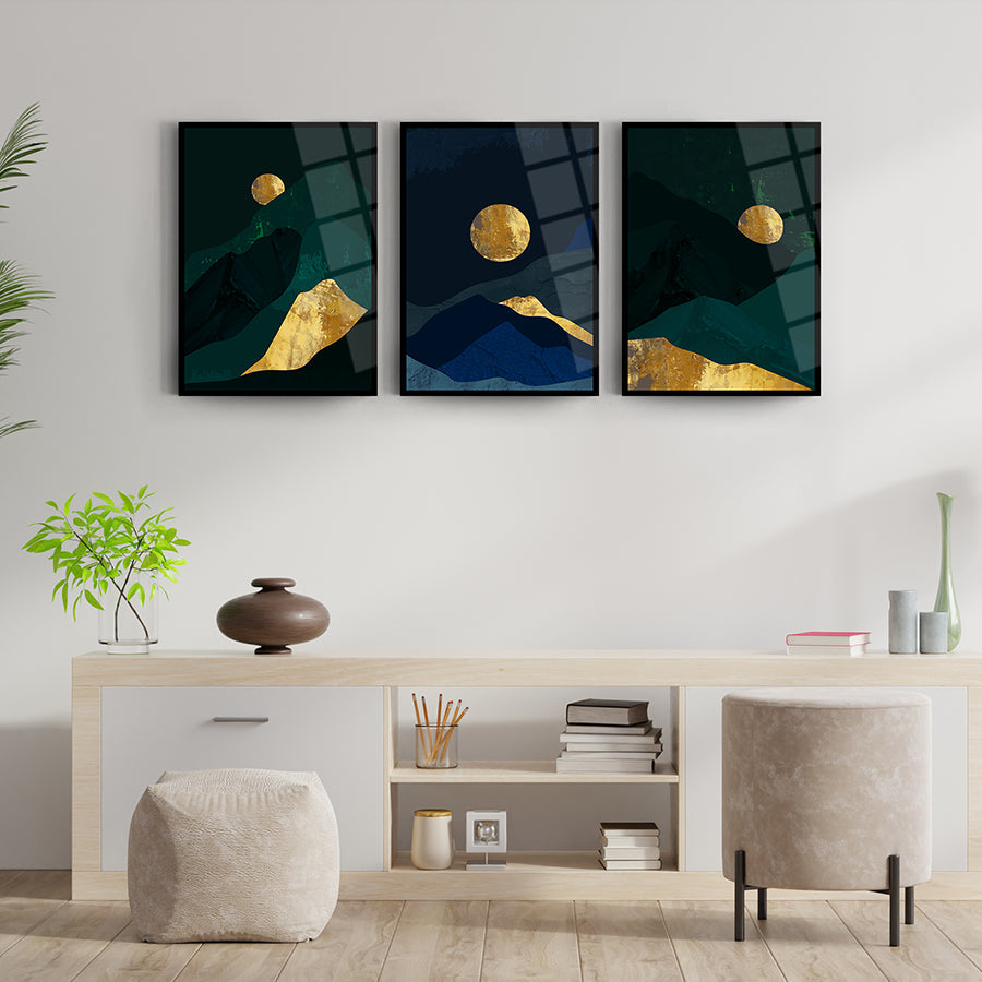 Yeşil Dağlar 3'lü Set Cam Tablo